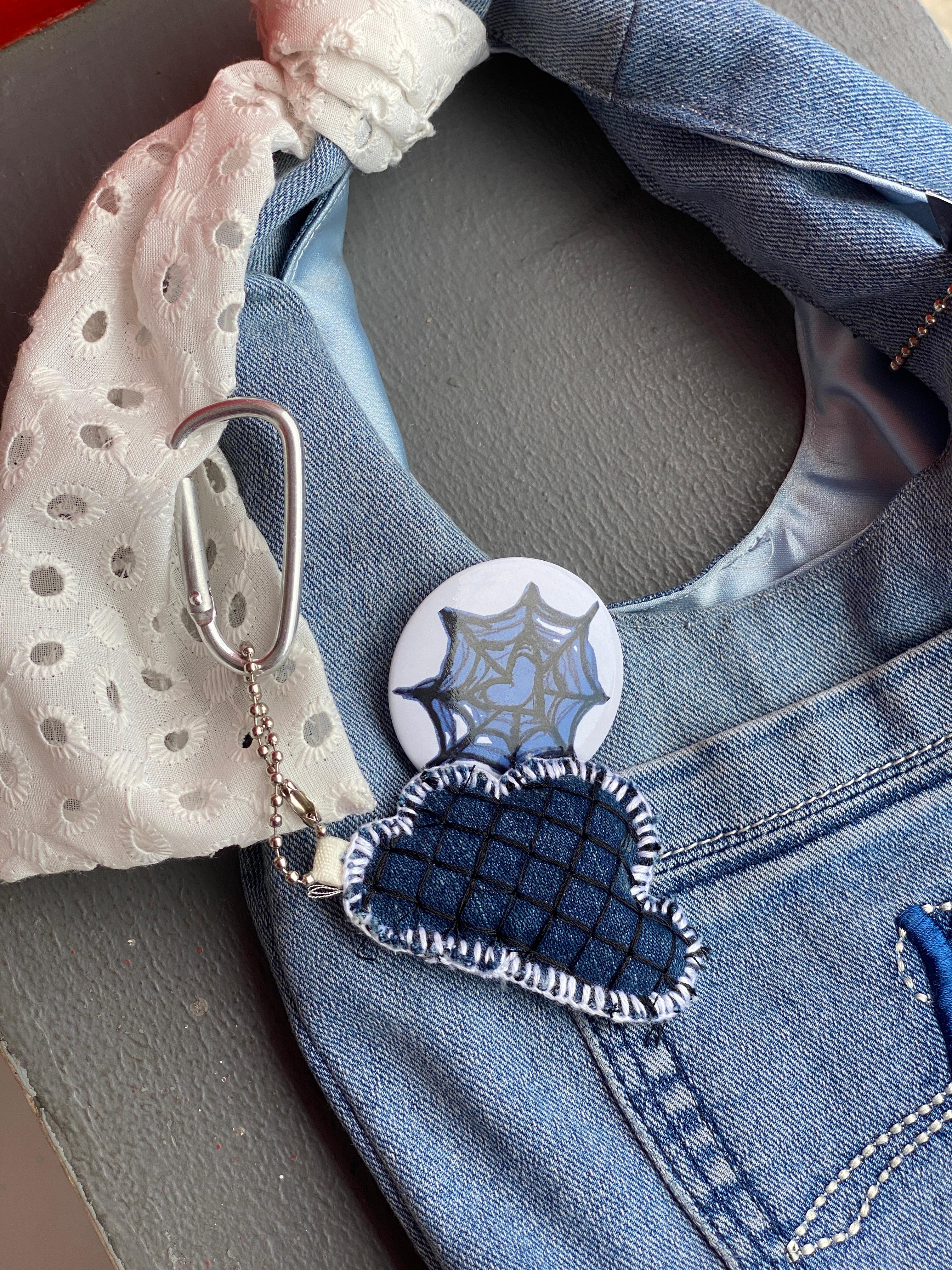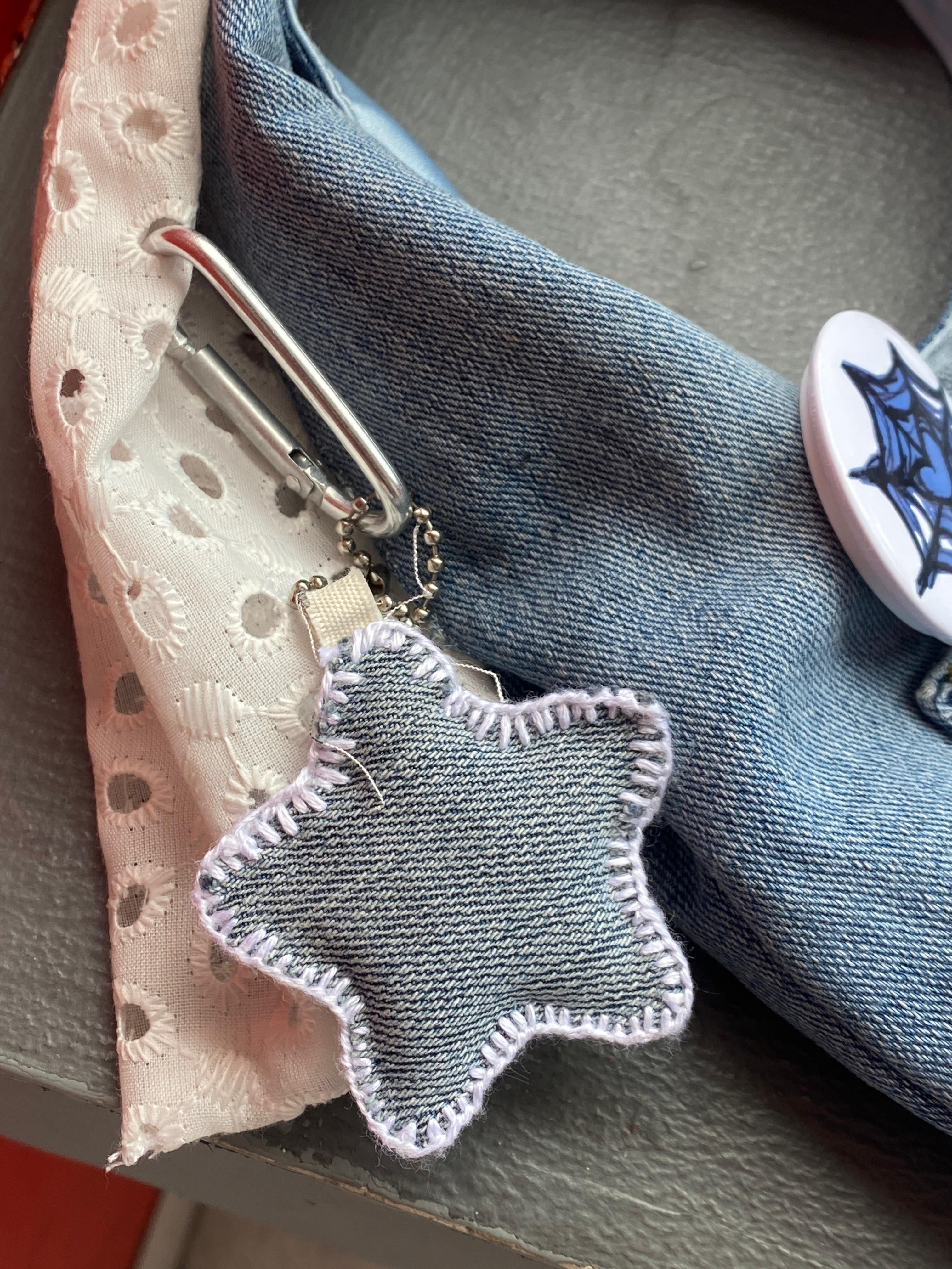 Keychain handmade dari kain donasi yang sudah melalui proses rework.